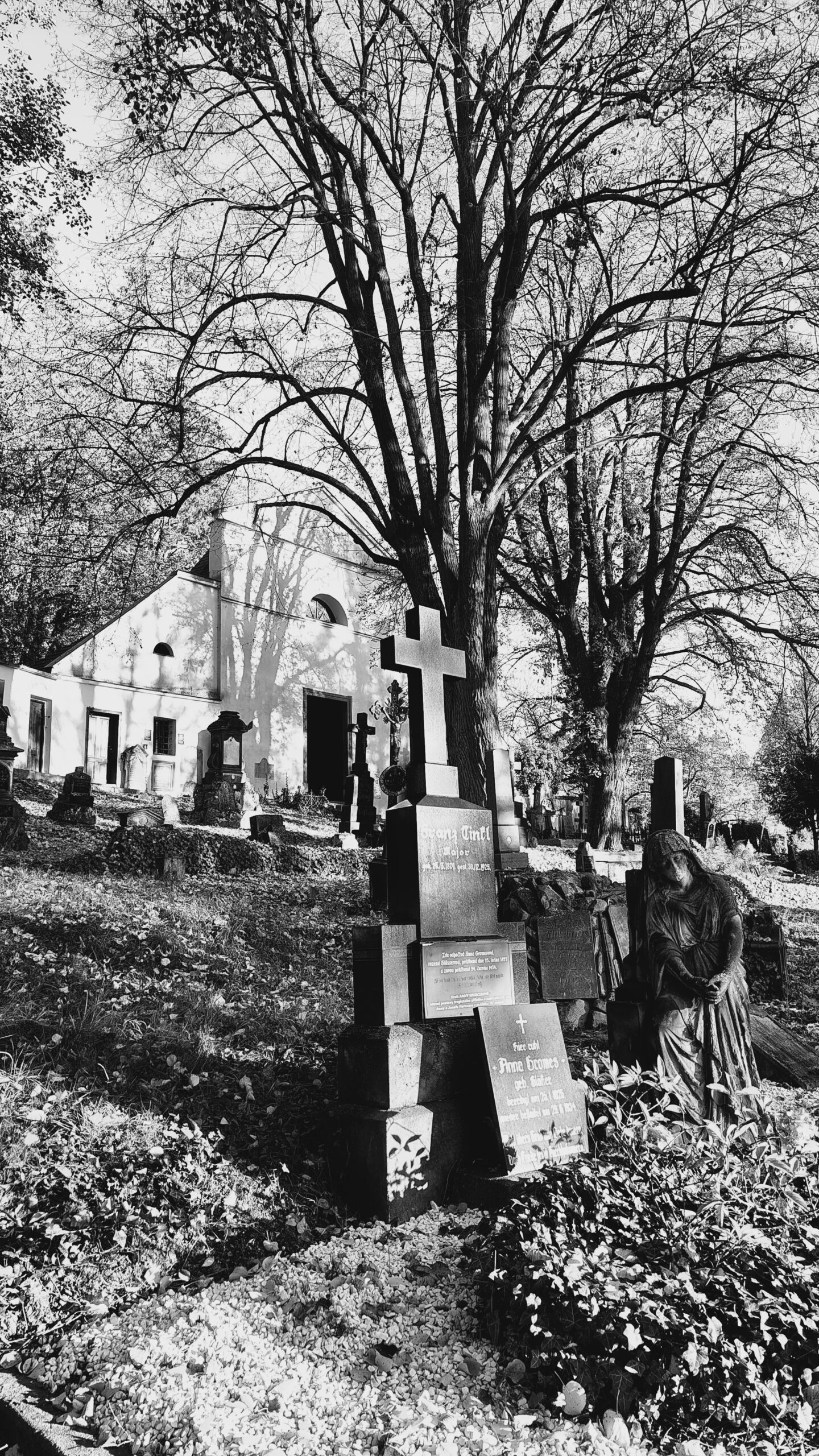 Překvapilo mě, že za celý ten čas, co jsem se toulal uličkami mezi hroby, rovnal vázy a převrácené květináče, odfoukával přilepené listy ze jmenovek na náhrobcích nebo jen tiše pozoroval, se na hřbitově neukázalo ani živáčka. Po cestě jsem to vzal ještě přes Kalvárii a při sestupování jsem narazil na toho postaršího fotografa. Zapředli jsme krátký hovor, já mluvil o něm a on zase o mně. Nedivil bych se, kdybych byl na nějakém jeho snímku, v jednu chvíli jsme fotili čelem proti sobě z opačné strany hřbitova a štelovali jsme se tak, aby mezi námi byl strom, který nás odstínil na našich snímcích. Chtěl jsem se ho zeptat, jestli někam dává své fotky, že bych se podíval, ale samozřejmě jsem to v tom okamžiku neudělal.