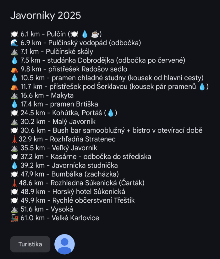Radši si na tyhle cesty ještě pořád dělám itinerář, abych věděl jak vystačit s vodou a jídlem a kde teoreticky hledat přístřešek na noc, kdyby byla bouřka apod. Ale někdy bych chtěl zkusit jít něco takovýho na blind a prostě řešit situace za pochodu. Tak snad jednou.