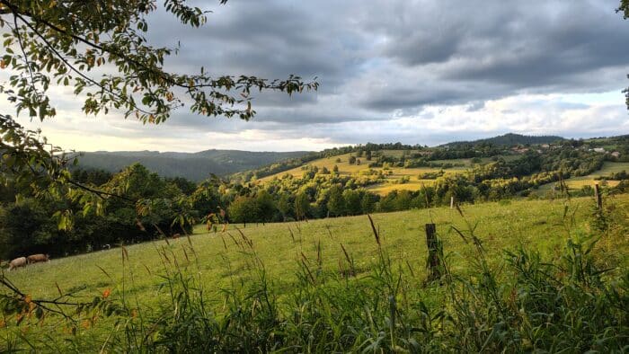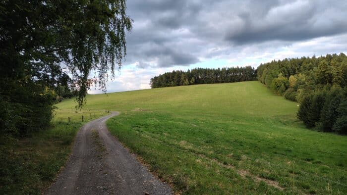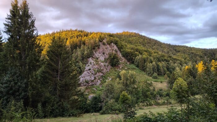 Počasí bylo v pátek při příjezdu ideální – chlad ještě nestačil dorazit v plné síle, sluníčko střídavě hřálo a my jsme se od nádraží vydali podél kolejí kousek za obec, kde jsme našlápli na žlutou turistickou trasu. Ještě předtím jsme si prohlédli mapy a zkusili si zapamatovat, kudy zhruba půjdeme, abychom mohli hodit telefony do bezdatového režimu a měli nerušenou cestu bez všemožných notifikací a zpráv. A bez dat jsme šlapali celý víkend – až na večery, kdy jsme se do sítě připojili, abychom napsali domů a poslat pár fotek. Hned od začátku jsme celkem stoupali, na hřeben je to z údolí pěkných pár výškových metrů. Ale nohy jsou čerstvé a ve skvělé formě bez únavy.