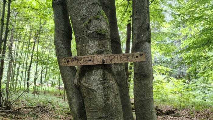 Kousek od vrcholu Makyty jsem poprvé vyzkoušel filtrlahev, když jsem doplnil vodu z pramene Brtíška. Ve vodě plavaly nějaké breberky, ale filtrem asi neprolezly, protože žádnou újmu nám voda neudělala. Z Makyty nás čekal poměrně krkolomný sestup na Papajské sedlo. Prudký, plný kořenů, kamení a sypké půdy, která pod botama ujížděla. Tady bych nechtěl jít nahoru, říkal jsem si a pes, kterého jsme s paničkou potkali v protisměru, nám svým jazykem vyplazeným až na vestě dával za pravdu. Jenže sedlo je z obou stran zaříznuté naprosto stejným terénem, takže co jsme sestoupali po šutrákové cestě, to jsme museli po šutrákové cestě zase vystoupat. Na sedle si Leňa trochu poupravila obuv kvůli obavě z puchýřů, chvíli jsme poseděli a pokecali s cyklisty (kterých jsme ten den potkali mnohem více, než turistů – efekt elektrokol) a poté vyrazili stoupat až do nebes. Kolem cesty voněly čerstvě pořezané smrky, které musely spadnout maximálně pár dní nazpět. Kilometr stoupání s převýšením více než 180 metrů nám zabral přesně půl hodiny, na vrcholku jsme se dostali k turistickému rozcestníku s prapodivným názvem Krkostěna. Tento masakrální výstup plný nebezpečného kamení a jiných překážek byl značený jako cyklistická trasa. Pokud bych někdy nad tím srázem s kolem stál, jediná varianta, kterou bych považoval za schůdnou, by bylo hodit to kolo přímo dolů a pak se za ním po prdeli svézt po svahu, protože jakýkoliv pokus o sjetí této hrbolaté černé sjezdovky by musel zákonitě skončit zlomenou páteří. Tomix v práci říkal, že by to určitě sjel, tak jsem na něj zvědav.
